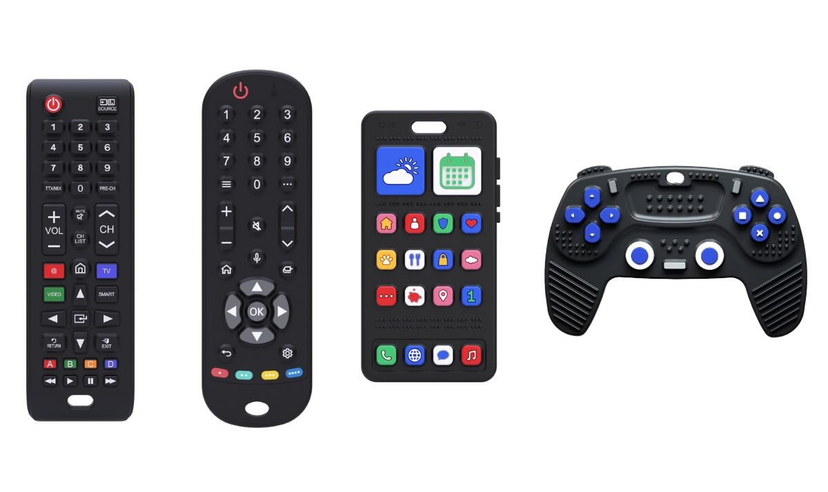 In 2022, inspired during a holiday in Australia, a new idea emerged. We wanted to expand our range with teething toys, but not just any standard variant. It had to connect with the world of parents: gadgets. Because who doesn't want to play with mum and dad's gadgets? During our trip we saw teething toys in the shape of remote controls and phones, but they came in bright colours and didn't appeal to our little adventurer. So we designed variants that look real, but are safe for baby teeth.