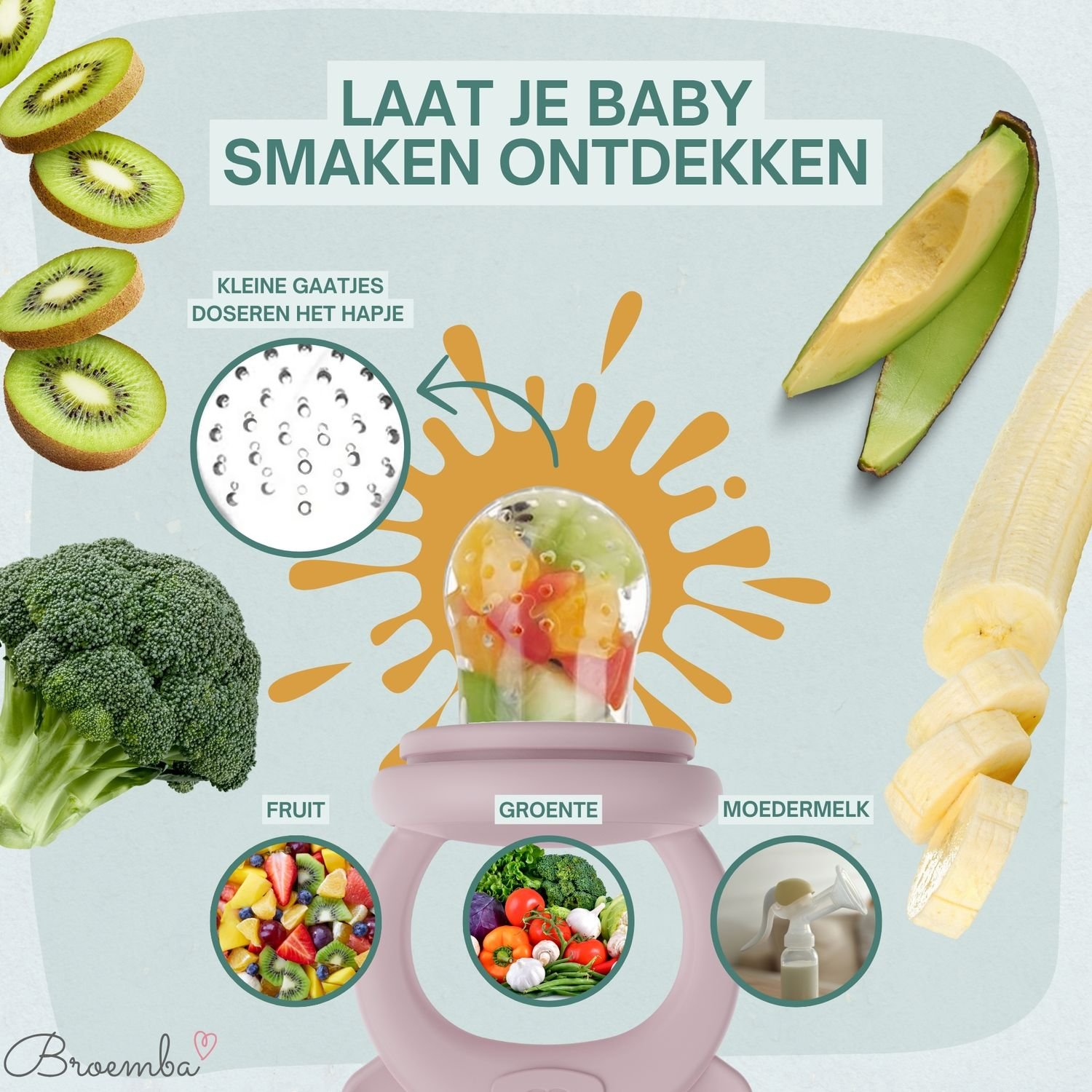 Tijdens de warmere dagen kun je eenvoudig verfrissende snacks maken met de ijsvormpjes met deksel. Vul het bewaarbakje met vers fruit, moedermelk of groentepuree en plaats het in de vriezer. Na het invriezen haal je het eten uit de ijsblokjesvorm en stop je het direct in het sabbelzakje. Je baby kan meteen genieten van deze gezonde en verfrissende lekkernijen. Het deksel voorkomt morsen in de vriezer en maakt het stapelen van ijsjes mogelijk, zodat je altijd een voorraad hebt. De fruitspenen en ijsvormpjes zijn gemaakt van 100% voedselveilige siliconen, vrij van BPA, PVC en ftalaten. Dit flexibele materiaal is zacht voor de handen en het tandvlees van je baby, en het is bestand tegen bijten en knijpen. De set kan eenvoudig worden gereinigd in de vaatwasser of met de hand voor optimale hygiƫne. Bovendien kan de dop van de fruitspeen ook gebruikt worden als bijtring, wat extra verlichting biedt bij doorkomende tandjes.